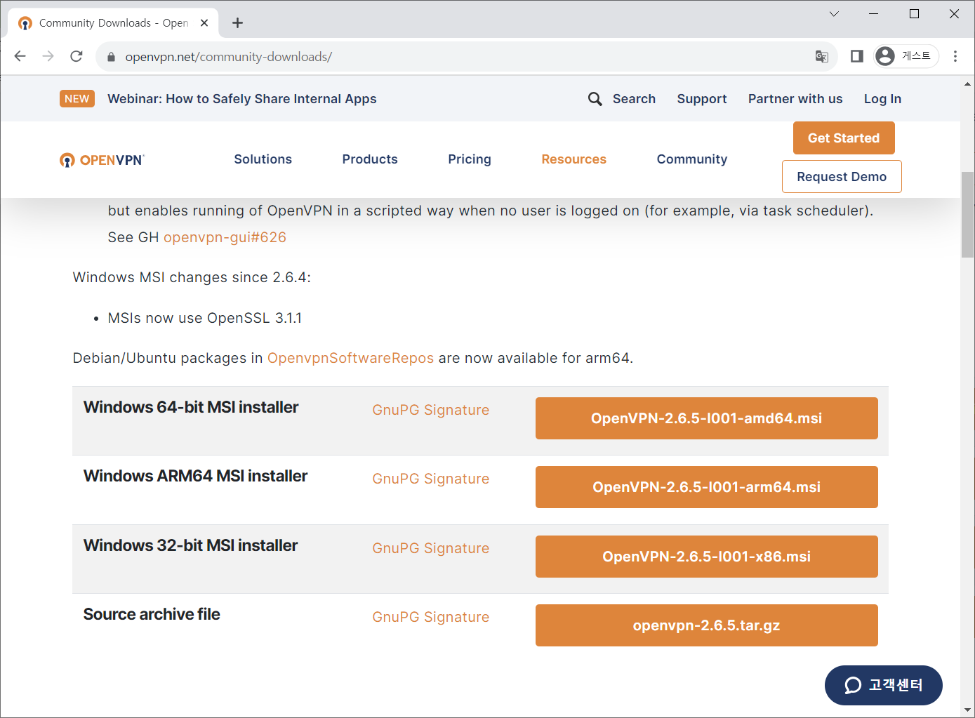 여기를 클릭하면 OpenVPN 클라이언트용 소프트웨어를 다운로드할 수 있습니다.