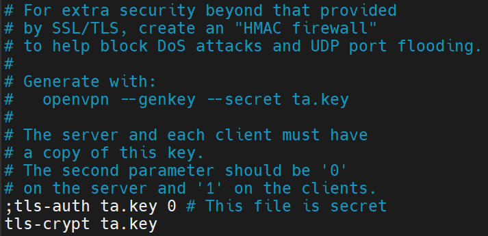 #ta.key 파일 역시 클라이언트 설정 파일에 추가할 것이므로 주석 처리