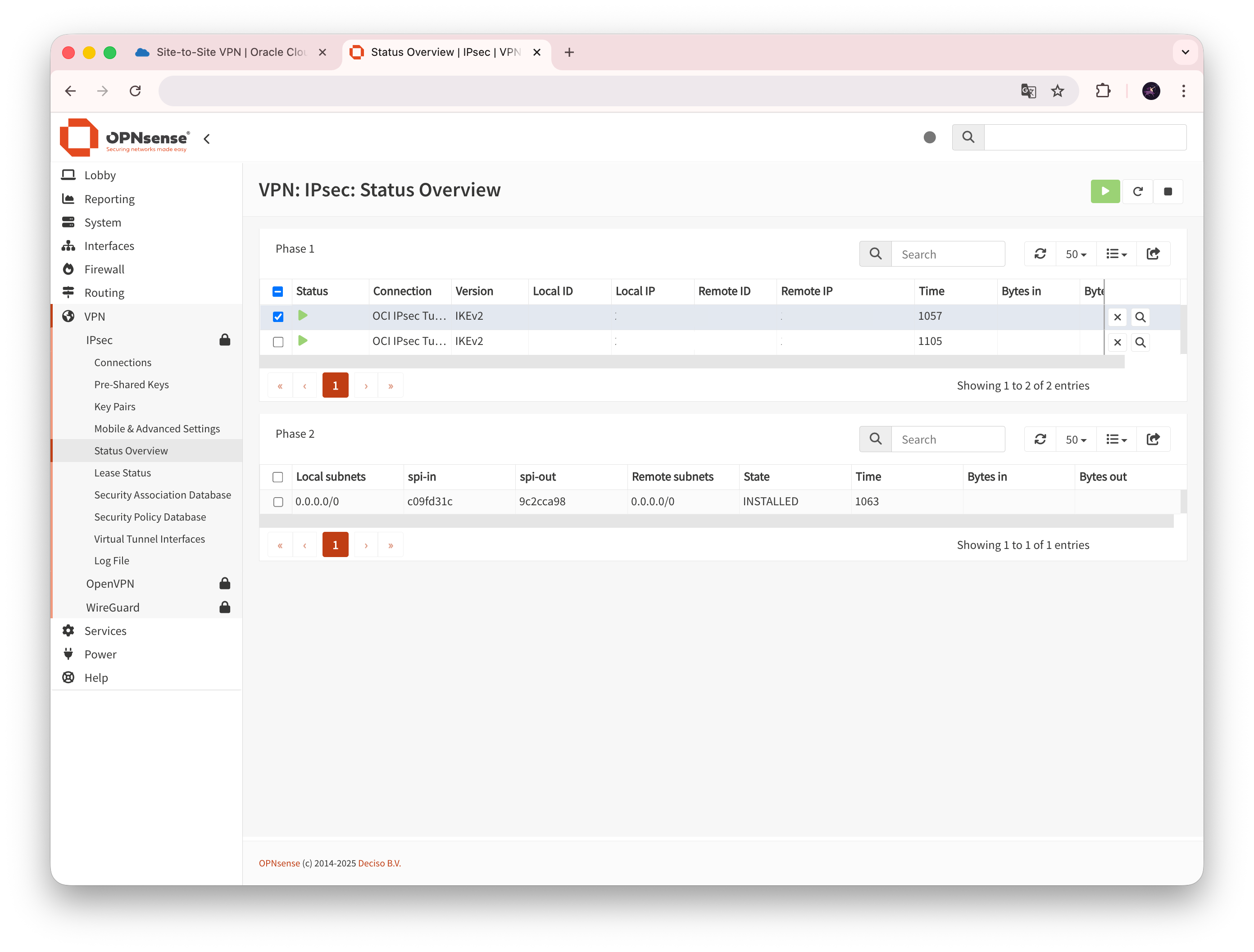 | NAT-T Rule | Pass | in | UDP | OCI IPsec Pubelic IP Address | OPNsense WAN Interface | 4500 |